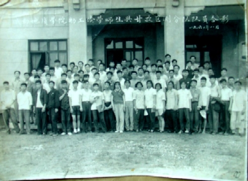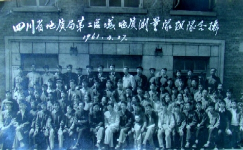1960年8月区测分队收队后到成都地质学院,整理资料编写报告,学院正置放暑假我们就在学生教室办公,图件特别多,有地形图、地质图、剖面图等,工作量很大,就我一个绘图员,没有绘图桌、透图台、晒图架,只有小笔尖、三角板、丁字尺,为完成任务想尽办法、克服种种困难、土法上马,用板凳倒转上面放一块玻璃板,下面放一电灯当透图台,绘图桌就是学生课桌上放一块图板,晒图用一条绒毯放在图板上两人将玻璃板放在上面用手按着晒图等。住的学生宿舍上下铺,吃的学生食堂定量供应,有时因加班晚了食堂东西已卖完了,地院离城又远,买不到吃的只有盐冲开水充饥。由于经常加班到凌晨太劳累,有次开会技术负责人站着都打瞌睡。就在那样艰苦困难的条件下,同志们战胜困难,按时保质、保量完成任务,向局里提交了合格报告和图件。