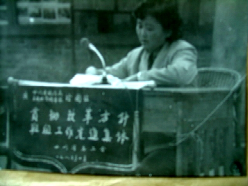 照片4:1985年10月伍财崇琳在名山队部作为绘图组获得先进集体作经验交流